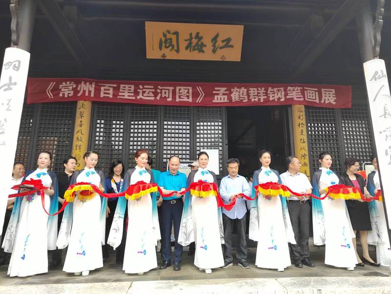 汪群致开幕词。她介绍《常州百里运河图》的创作情况,感谢孟鹤群对常州大运河文化带建设的支持。曹雨平为开幕式剪彩。