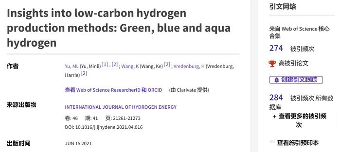 根据最新公布的ESI数据,我校经济与管理学院教师余敏丽作为第一作者在国际期刊《INTERNATIONAL JOURNAL OF HYDROGEN ENERGY》发表的论文《Insights into low-carbon hydrogen production methods: Green, blue and aqua hydrogen》(SCI/SSCI收录),被ESI数据库遴选为高被引论文。