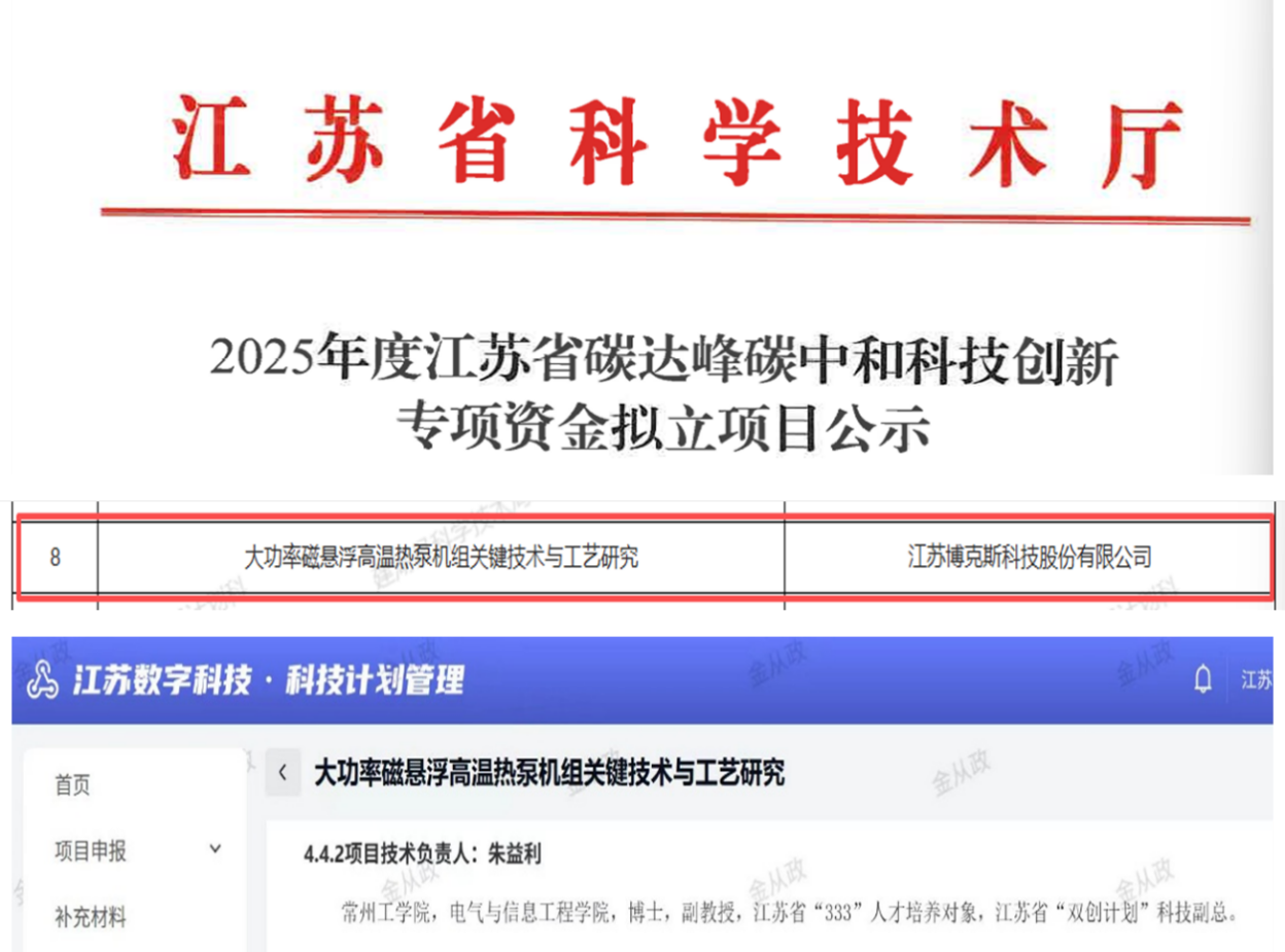 近日,省科技厅公布了2025年度江苏省碳达峰碳中和科技创新专项资金项目,由我校作为合作单位,我校朱益利博士作为技术负责人申报的“揭榜挂帅”类项目“大功率磁悬浮高温热泵机组关键技术与工艺研究“成功获批,标志着我校磁悬浮科技创新团队的成套装备技术及其应用水平又迈上了一个新台阶。