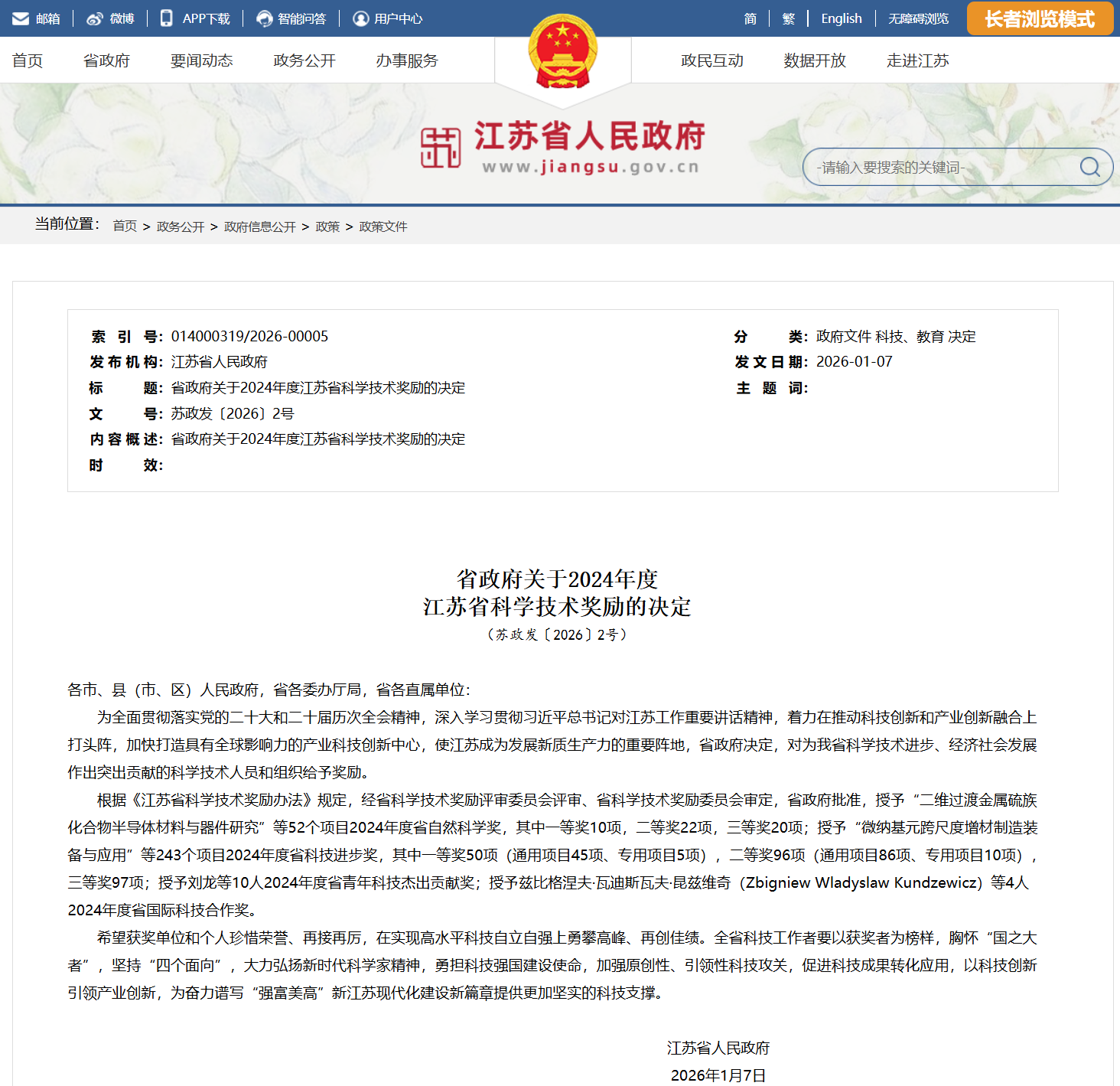 近日,江苏省人民政府发布 2024 年度江苏省科学技术奖励决定,对为全省科技进步和经济社会发展作出突出贡献的个人与组织予以表彰。我校凭借在关键技术领域的持续攻关与深度产业融合实践,斩获 3 项省级科学技术奖,其中以第一单位牵头完成的 2 项成果分获自然科学奖二等奖、科技进步奖三等奖,以参与单位协作完成的 1 项成果获科技进步奖三等奖,充分彰显了学校在应用型科研领域的硬核实力与服务地方发展的鲜明特色。