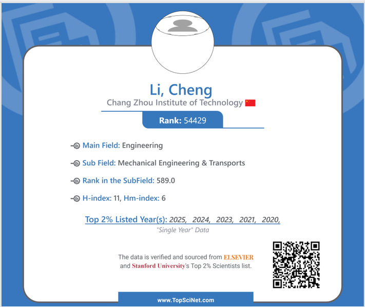 我校李成教授荣登2025年全球前2%...